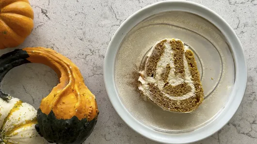 If you’re looking for a fabulous recipe to make this Thanksgiving or holiday season, this Pumpkin Cream Cheese Roll is it! Cinnamon and nutmeg provide the warm spices we associate with autumn baking, and it’s as beautiful as it is delicious. The cake is very forgiving as any cracks easily can be mended with the luscious cream cheese frosting.