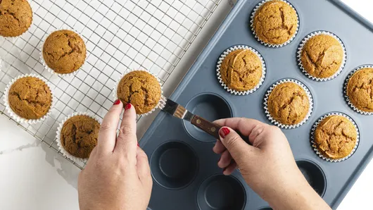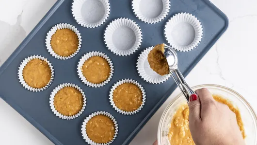 var configuration = {"title":"Pumpkin Muffins","introduction":"\u003cp\u003eSkip the coffee shop line and bake a batch of warm, spice-filled Pumpkin Muffins in your own kitchen! This easy recipe yields two dozen moist muffins perfect for breakfast, snacks, or freezing for later. Packed with cinnamon, nutmeg, cloves and ginger, these tasty muffins are like a Pumpkin Spice Latte on a plate—but better, because you made them yourself. Easy pumpkin muffins take only 15 minutes to pull together, so they’re even a do-able breakfast option on those first mornings when you feel a distinctive chill in the air.\u003c/p\u003e","servingSize":"1 Serving","image":{"small":{"media":"(min-width: 0px)","src":"https://mojo.generalmills.com/api/public/content/RYUVCmJqSQ6RwLJptMy7hg_webp_base.webp?v=16267dc8\u0026t=e724eca7b3c24a8aaa6e089ed9e611fd"},"medium":{"media":"(min-width: 500px)","src":"https://mojo.generalmills.com/api/public/content/RYUVCmJqSQ6RwLJptMy7hg_webp_base.webp?v=16267dc8\u0026t=191ddcab8d1c415fa10fa00a14351227"},"large":{"media":"(min-width: 767px)","src":"https://mojo.generalmills.com/api/public/content/RYUVCmJqSQ6RwLJptMy7hg_webp_base.webp?v=16267dc8\u0026t=191ddcab8d1c415fa10fa00a14351227"},"alt":"Pumpkin Muffins"},"contributor":{"label":"By","name":"Edited by Angela Ritchie","profileUrl":"/about-us/angela","displayDate":{"label":"Updated","date":"Sep 30, 2025"}},"ingredientGroups":[{"ingredients":[{"quantity":"1 1/2","description":"cups Gold Medal™ Whole Wheat Flour"},{"quantity":"1","description":"cup Gold Medal™ All Purpose Flour"},{"quantity":"1 1/2","description":"teaspoons baking soda"},{"quantity":"1 1/4","description":"teaspoons kosher (coarse) salt"},{"quantity":"1 1/4","description":"teaspoons ground cinnamon"},{"quantity":"1 1/8","description":"teaspoons ground nutmeg"},{"quantity":"3/4","description":"teaspoon ground cloves"},{"quantity":"1/2","description":"teaspoon ground ginger"},{"quantity":"1 1/2","description":"cups sugar"},{"quantity":"2/3","description":"cup canola oil"},{"quantity":"1/2","description":"cup water"},{"quantity":"3","description":"large eggs"},{"quantity":"1","description":"can (15 oz) pumpkin (not pumpkin pie mix)"}]}],"steps":[{"description":"Heat oven to 350°F. Place paper baking cup in each of 24 regular-size muffin cups."},{"description":"\u003cp\u003eIn large bowl, mix flours, baking soda, salt, cinnamon, nutmeg, cloves and ginger; make well in center of mixture. In medium bowl, stir sugar, oil, water and eggs with whisk. Stir in pumpkin; add to flour mixture, stirring just until moistened.\u003c/p\u003e","stepShotImageUrl":"//mojo.generalmills.com/api/public/content/0xSHovH0SPSMQKeyEztBGg_webp_base.webp?v=f966437b\u0026t=51a43a57af4046789e5a7f20567b1195"},{"description":"\u003cp\u003eDivide batter evenly among muffin cups.\u003c/p\u003e","stepShotImageUrl":"//mojo.generalmills.com/api/public/content/AsdoknUtRYuNXWdwupFgNA_webp_base.webp?v=4dfab47a\u0026t=51a43a57af4046789e5a7f20567b1195"},{"description":"\u003cp\u003eBake 25 minutes or until toothpick inserted in center comes out clean. Cool 5 minutes; remove from pans to cooling racks. Serve warm or cool.\u003c/p\u003e","stepShotImageUrl":"//mojo.generalmills.com/api/public/content/LATxi0KAQ5ygvKb94Z5w0A_webp_base.webp?v=0a295366\u0026t=51a43a57af4046789e5a7f20567b1195"}],"tips":[{"title":"","description":"Warm, Spiced Pumpkin Muffins: Skip the coffee shop! Bake 24 homemade muffins with cinnamon, nutmeg \u0026amp; ginger. A delicious taste of autumn!","category":"Rich Snippet","tipShots":[]},{"title":"","description":"Recipe meets Kitchen Tested criteria. Reviewed as part of project MSO-5941 BC Audit 200 recipes","category":"Kitchen Tested","tipShots":[]},{"title":"","description":"There are some best practices for mixing up quick breads, most importantly not overmixing the batter. The dry ingredients should just be moistened by the wet ingredients—and it’s okay if there are still some small pockets of floury ingredients as you spoon the batter into the muffin tin.","category":"Method Note","tipShots":[]},{"title":"","description":"The best muffins should be golden brown, slightly rounded with bumpy tops, tender, moist, even textured and easy to remove from the pan. Here are some things that can happen, with solutions to help. Pale: the oven was not hot enough or was underbaked. Peaked or smooth on top: too much mixing. Tough and heavy: too much flour or overmixing. Dry: too much flour, oven too hot or baked too long. Tunnels: too much mixing.","category":"Method Note","tipShots":[]},{"title":"","description":"If your muffin tins have a dark nonstick surface, you\u0027ll want to reduce the oven temperature by 25°F. The dark surface absorbs heat, speeding up the baking process making the muffins brown more quickly.","category":"Method Note","tipShots":[]}],"kitchenTips":[{"title":"","description":"There are some best practices for mixing up quick breads, most importantly not overmixing the batter. The dry ingredients should just be moistened by the wet ingredients—and it’s okay if there are still some small pockets of floury ingredients as you spoon the batter into the muffin tin.","category":"Method Note","tipShots":[]},{"title":"","description":"The best muffins should be golden brown, slightly rounded with bumpy tops, tender, moist, even textured and easy to remove from the pan. Here are some things that can happen, with solutions to help. Pale: the oven was not hot enough or was underbaked. Peaked or smooth on top: too much mixing. Tough and heavy: too much flour or overmixing. Dry: too much flour, oven too hot or baked too long. Tunnels: too much mixing.","category":"Method Note","tipShots":[]},{"title":"","description":"If your muffin tins have a dark nonstick surface, you\u0027ll want to reduce the oven temperature by 25°F. The dark surface absorbs heat, speeding up the baking process making the muffins brown more quickly.","category":"Method Note","tipShots":[]}],"add