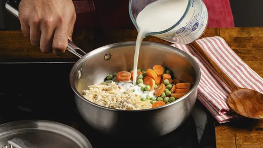 var configuration = {"title":"Quick Chicken and Dumplings","introduction":"Indulging your comfort food cravings doesn’t have to mean spending all day in the kitchen. With this Quick Chicken and Dumplings recipe, you can get all the creamy, buttery, slow simmered flavors of classic chicken and dumplings—in record time! Velvety sauce, tender-crisp veggies, and hearty chicken are topped with golden, good-as-homemade dumplings courtesy of \u003ca href=\u0022https://www.bettycrocker.com/products/bisquick/gluten-free-pancake-and-baking-mix\u0022\u003eOriginal Bisquick™ mix\u003c/a\u003e. It’s perfect for a busy weeknight, and your family will absolutely love it.","servingSize":"1 Serving","image":{"small":{"media":"(min-width: 0px)","src":"https://mojo.generalmills.com/api/public/content/6Mk7c3uahE6rniJuFna3xA_webp_base.webp?v=a5a68211\u0026t=e724eca7b3c24a8aaa6e089ed9e611fd"},"medium":{"media":"(min-width: 500px)","src":"https://mojo.generalmills.com/api/public/content/6Mk7c3uahE6rniJuFna3xA_webp_base.webp?v=a5a68211\u0026t=191ddcab8d1c415fa10fa00a14351227"},"large":{"media":"(min-width: 767px)","src":"https://mojo.generalmills.com/api/public/content/6Mk7c3uahE6rniJuFna3xA_webp_base.webp?v=a5a68211\u0026t=191ddcab8d1c415fa10fa00a14351227"},"alt":"Quick Chicken and Dumplings"},"contributor":{"label":"By","name":"Betty Crocker Kitchens","profileUrl":"/about-us","displayDate":{"label":"Updated","date":"Oct 30, 2023"}},"ingredientGroups":[{"ingredients":[{"quantity":"1 1/2","description":"cups milk"},{"quantity":"1","description":"cup frozen peas and carrots"},{"quantity":"1","description":"cup chopped cooked chicken"},{"quantity":"1","description":"can (10 1/2 oz) condensed cream of chicken soup"},{"quantity":"1","description":"cup Original Bisquick™ mix","productLink":"/products/bisquick/gluten-free-pancake-and-baking-mix"},{"quantity":"1/3","description":"cup milk"},{"quantity":"","description":"Paprika, if desired"}]}],"steps":[{"description":"In 3-quart saucepan, place 1 1/2 cups milk, the frozen peas and carrots, chicken and soup. Heat to boiling over high heat, stirring frequently. Reduce to a simmer.\n","stepShotImageUrl":"//mojo.generalmills.com/api/public/content/OMnLYn6alUmBwBN0N9jn9w_webp_base.webp?v=51d3f0ab\u0026t=51a43a57af4046789e5a7f20567b1195"},{"description":"In medium bowl, mix Bisquick mix and 1/3 cup milk until soft dough forms. Gently drop dough by 8 spoonfuls onto chicken mixture. Do not submerge dumplings in liquid. Sprinkle with paprika. ","stepShotImageUrl":"//mojo.generalmills.com/api/public/content/bt4P3d_0t0uDkZ-7ibFcvQ_webp_base.webp?v=824d6eed\u0026t=51a43a57af4046789e5a7f20567b1195"},{"description":"Simmer over low heat 10 minutes. Cover; cook 8 to 12 minutes longer or until dumplings are cooked through.","stepShotImageUrl":"//mojo.generalmills.com/api/public/content/w_9BdruVT0WsIWUspHQTDQ_webp_base.webp?v=89c34ab6\u0026t=51a43a57af4046789e5a7f20567b1195"}],"tips":[{"title":"","description":"For made-from-scratch taste, with way less effort, try these quick and easy chicken and dumplings the whole family will love.","category":"Rich Snippet","tipShots":[]},{"title":"Storing Poultry:","description":"If you’re wondering how to store your chicken, here are some guidelines: \n\u003cul\u003e\u003cli\u003ePoultry packaged in clear, sealed plastic wrap on a plastic tray doesn’t need to be repackaged.\u003c/li\u003e\n\u003cli\u003ePoultry wrapped in butcher paper should be repackaged in plastic wrap, foil or resealable plastic freezer bags. Store in the meat compartment or coldest part of the refrigerator or freeze as soon as possible.\u003c/li\u003e\n\u003cli\u003eCook or freeze poultry within 2 days of the sell-by date. If the poultry is uncooked, whole or in parts, you can store it in a refrigerator (36° to 40°F) for 1 to 2 days or in the freezer (0°F or colder) for 12 months if it’s a whole chicken or 9 months if it’s in pieces). If the poultry is uncooked and ground, you can store it in a refrigerator (36° to 40°F) for 1 to 2 days or in the freezer (0°F or colder) for 3 to 4 months. If the poultry is cooked, you can store it in a refrigerator (36° to 40°F) for 2 days or in the freezer (0°F or colder) for 4 months.\u003c/li\u003e\u003c/ul\u003e","category":"Storage","tipShots":[]},{"title":"Serve With ","description":"Serve this home-style dish with a bagged ready-to-eat salad from the produce section for the ultimate easy meal.","category":"Serving Suggestions/Menu","tipShots":[]},{"title":"Substitution ","description":"You can use 1 cup of your favorite frozen vegetable combination instead of the peas and carrots.","category":"Substitution","tipShots":[]},{"title":"Success ","description":"For tender dumplings, don’t overmix the dough. Mix just until moistened.","category":"No Title","tipShots":[]},{"title":"","description":"Hearty, warming, and wonderfully homey, chicken and dumplings are the perfect dish for a chilly fall weekend with not much to do. But with this quick and easy chicken and dumpling recipe you can still get a comforting meal on the table, even if the day feels a little more chaotic than cozy. Done in around 30 minutes, it only tastes like it took all day!","category":"Editorial","tipShots":[]},{"title":"","description":"Recipe meets Kitchen Tested criteria. Reviewed as part of SEO improvements Oct. 2019.","category":"Kitchen Tested","tipShots":[]}],"kitchenTips":[{"title":"Storing Poultry:","description":"If you’re wondering how to store your chicken, here are some guidelines: \n\u003cul\u003e\u003cli\u003ePoultry packaged in clear, sealed plastic wrap on a plastic tray doesn’t need to be repackaged.\u003c/li\u003e\n\u003cli\u003ePoultry wrapped in butcher paper should be repackaged in plastic wrap, foil or resealable plastic freezer bags. Store in the meat compartment or coldest part of the refrigerator or freeze as soon as possible.\u003c/li\u003e\n\u003cli\u003eCook or freeze poultry within 2 days of the sell-by