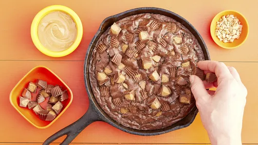 Level up your brownie game in the easiest way with a dessert that's guaranteed to please! Peanut butter-chocolate lovers will be reaching for seconds after a single bite of this skillet treat. Top your brownie batter with chopped peanut butter cups, bake and garnish with even more goodies for an over-the-top indulgent dessert. Don’t forget the ice cream!