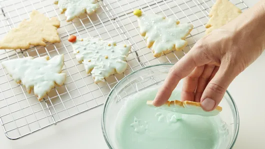 var configuration = {"title":"Retro Tinsel Christmas Tree Cookies","introduction":"Give your sugar cookies the retro treatment! This clever decorating technique gives you cookie making bragging rights. Tint Betty Crocker™ Rich \u0026 Creamy Vanilla Frosting with your favorite Christmas colors, pipe on a garland, add a shimmer and whatever other decorations you desire. What\u0027s your favorite Christmas topper? Try M\u0026M’s® candy in place of a star.","servingSize":"1 Cookie","image":{"small":{"media":"(min-width: 0px)","src":"https://mojo.generalmills.com/api/public/content/4xmry-N1pEmJTSZK4pXtWQ_webp_base.webp?v=90baf6d6\u0026t=e724eca7b3c24a8aaa6e089ed9e611fd"},"medium":{"media":"(min-width: 500px)","src":"https://mojo.generalmills.com/api/public/content/4xmry-N1pEmJTSZK4pXtWQ_webp_base.webp?v=90baf6d6\u0026t=191ddcab8d1c415fa10fa00a14351227"},"large":{"media":"(min-width: 767px)","src":"https://mojo.generalmills.com/api/public/content/4xmry-N1pEmJTSZK4pXtWQ_webp_base.webp?v=90baf6d6\u0026t=191ddcab8d1c415fa10fa00a14351227"},"alt":"Retro Tinsel Christmas Tree Cookies"},"contributor":{"label":"By","name":"Betty Crocker Kitchens","profileUrl":"/about-us","displayDate":{"label":"Updated","date":"Aug 9, 2023"}},"ingredientGroups":[{"ingredients":[{"quantity":"1","description":"pouch (17.5 oz) Betty Crocker™ Sugar Cookie Mix","productLink":"/products/cookiemix/sugar"},{"quantity":"","description":"Flour, butter and egg called for on cookie mix pouch for cutout cookies"},{"quantity":"1 1/4","description":"cups from 1 tub (16 oz) Betty Crocker™ Rich \u0026 Creamy Vanilla Frosting"},{"quantity":"1/8","description":"teaspoon Betty Crocker™ blue gel food color"},{"quantity":"","description":"M\u0026M’s® candy-coated milk chocolate candies (assorted colors), if desired"}]}],"steps":[{"description":"Heat oven to 375°F. In medium bowl, stir cookie mix, flour, butter and egg until soft dough forms."},{"description":"On floured surface, roll dough 1/4 inch thick. Cut with 3-inch tree-shaped cookie cutter; place cutouts 2 inches apart on ungreased cookie sheets.","stepShotImageUrl":"//mojo.generalmills.com/api/public/content/P7F5PwcfbUSeZuDUHwmQsQ_webp_base.webp?v=e5089902\u0026t=51a43a57af4046789e5a7f20567b1195"},{"description":"Bake 7 to 9 minutes or until edges are light golden brown. Cool 1 minute; remove from cookie sheets to cooling rack. Cool completely, about 20 minutes."},{"description":"In large microwavable bowl, stir 1 1/4 cups frosting and the food color until blended. Microwave uncovered 25 to 30 seconds or until warmed and thinner consistency. Dip top side of each cookie into glaze, letting excess drip off. Place cookie right side up on cooling rack placed over cookie sheet or waxed paper. Rewarm frosting mixture in microwave to maintain dipping consistency, if needed. If desired, place 1 chocolate candy on top of each tree. Let stand about 2 hours or until set. Store covered in airtight container at room temperature with waxed paper between layers.","stepShotImageUrl":"//mojo.generalmills.com/api/public/content/aH-Rs_ac5ky8eMcf8DYqTw_webp_base.webp?v=b2b7e0ca\u0026t=51a43a57af4046789e5a7f20567b1195"}],"tips":[{"title":"","description":"Cut cookies with a cutter dipped in flour. Cutting shapes as close together as possible on the rolled dough helps you avoid rerolling the dough scraps (rerolled dough will be a little tougher). To more easily move cookies from the surface to the cookie sheet, lightly press the back of your spatula in flour beforehand.","category":"Techniques","tipShots":[]},{"title":"","description":"Once cookies are glazed, get creative and decorate with edible glitter, nonpareils and candy sprinkles.","category":"Presentation/Garnish","tipShots":[]},{"title":"","description":"To pipe garlands, spoon 2 tablespoons of frosting into small resealable food-storage plastic bag; partially seal, and cut off tiny corner of bag. Squeeze bag to pipe lines of frosting over glazed cookies. Place M\u0026M’s® candies on garlands for extra decoration.","category":"Variation","tipShots":[]},{"title":"","description":"For a sparkly look, spray on shimmering food color after glaze has set. Shimmering food color spray can be found in cake decorating section of large retail grocery stores.","category":"Variation","tipShots":[]},{"title":"","description":"These Christmas trees can come in any color you wish. To make more than one color, divide frosting, and tint each portion as desired. To account for dipping, additional frosting may be needed when using multiple colors.","category":"Variation","tipShots":[]},{"title":"","description":"For best results, bake one cookie sheet at a time on the middle oven rack.","category":"Techniques","tipShots":[]},{"title":"","description":"To recreate the pastel colors we used, squeeze a tiny bit of gel food color into the frosting, or use a toothpick to control the amount. Then, stir to blend. You can always add more food color if you are looking for a darker color, but it’s easier to start out using less and adding more as needed.","category":"Techniques","tipShots":[]},{"title":"","description":"When dipping cookies, it’s handy to have a damp paper towel nearby, so you can keep fingers clean and cookies smudge free. If frosting thickens while you’re in the midst of decorating, return to microwave, microwave in 5-second increments and keep a close eye—it doesn’t take long to warm frosting to the right consistency.","category":"Techniques","tipShots":[]},{"title":"","description":"Be sure the frosting is completely set before storing cookies to avoid them sticking together.","category":"Techniques","tipShots":[]},{"title":"","description":"Kitchen Tested: 6/2019","category":"Kitchen Tested","tipShots":[]}],"kitchenTips":[{"title":"","description":"Cut cookies with a cutter dipped in flour. Cutting shapes as close together as possible on the rolled dough helps you avoid rerolling the dough scraps (rerolled dough will be a li