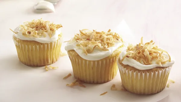 Step5Frost cooled cupcakes. Sprinkle tops with coconut.