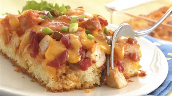 Step2In 10-inch nonstick skillet, cook chicken over medium-high heat, stirring frequently, until outsides turn white; drain. Stir in salsa; heat until hot. Spoon over batter in pan to within 1/2 inch of edges.