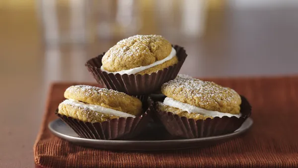 Step5For each whoopie pie, spread 2 tablespoons filling on bottom of 1 cookie. Top with second cookie, bottom side down; gently press together. Store covered in refrigerator.