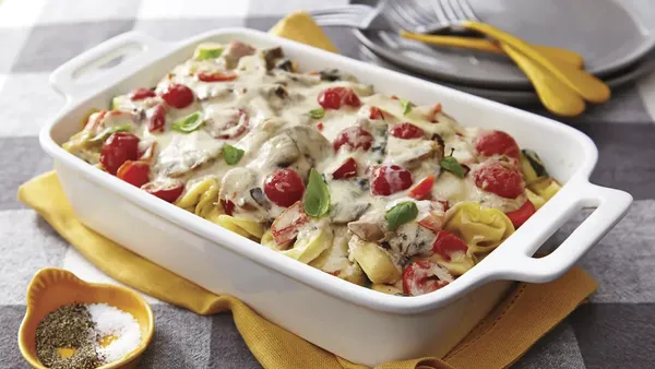 Step1Heat oven to 325°F. Spray 3-quart casserole with cooking spray. Cook and drain tortellini as directed on package.
