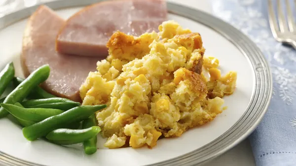 Creamy corn sprinkled with a crunchy topping makes a delicious side dish for roasted chicken, pork and beef.