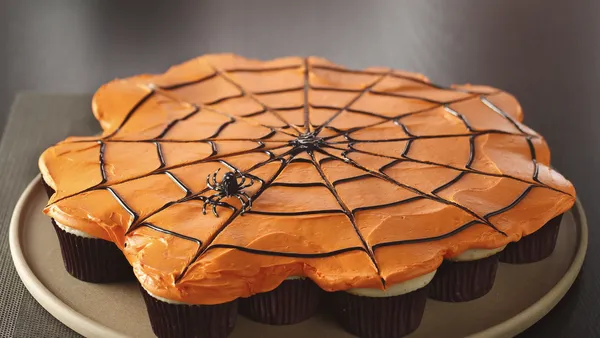 Step3Squeeze circles of decorating gel on each cupcake; pull knife through gel from center outward to make web. To make each spider, roll out 1 gumdrop and cut out 8 strips for legs; place another gumdrop on top. Place spider on cupcake. Store loosely covered.