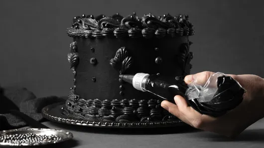 Step8Tint the remaining buttercream frosting black by adding food gel, a few drops at a time, and stirring between each addition until the desired color is reached.