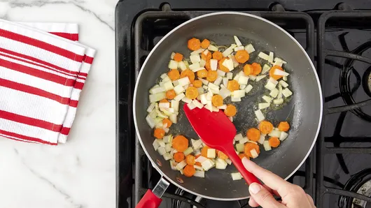 Step1In 10-inch nonstick skillet, melt butter over medium heat. Add carrot and onion. Cook 6 to 8 minutes, stirring frequently, until vegetables are softened.