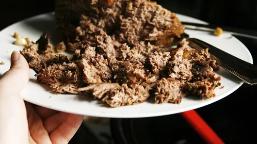 Step4Remove beef from slow cooker; place on large plate. Using 2 forks, shred beef. Return beef to slow cooker; stir well to mix beef with sauce. Serve immediately.