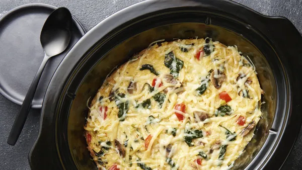 Our hearty, slow-cooker dish of Bisquick, hash browns, fresh spinach and mozzarella cheese is perfect for Sunday brinner when your family is on the run.