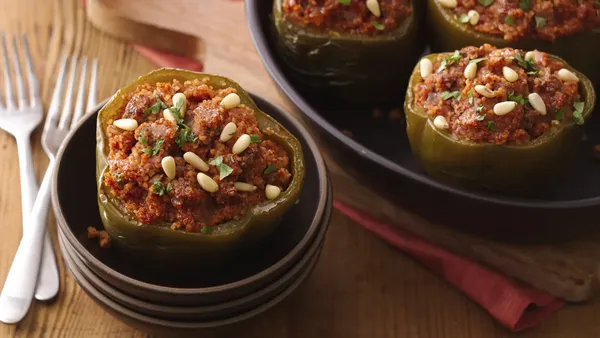 Step5Cover and cook on low heat setting 4 to 6 hours or until peppers are tender. Garnish with pine nuts and cilantro.