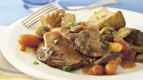 var configuration = {"title":"Slow-Cooker Easy Pot Roast","introduction":"You already make getting big flavor on the table look easy, and this slow-cooker pot roast is no exception. Whip up a hearty beef roast slow-cooker recipe that comes together with Progresso™ beef broth, boneless beef chuck and veggies. You\u0027ll only need 25 minutes to prep–then you can go about your day as it cooks. Once dinnertime rolls around, you\u0027ll be greeted by a perfectly seasoned, pull-apart slow-cooker pot roast that will hit the spot every time.","servingSize":"1 Serving","image":{"small":{"media":"(min-width: 0px)","src":"https://mojo.generalmills.com/api/public/content/sdWgTP9LqEC8e0xJczsNmg_webp_base.webp?v=9434d88c\u0026t=e724eca7b3c24a8aaa6e089ed9e611fd"},"medium":{"media":"(min-width: 500px)","src":"https://mojo.generalmills.com/api/public/content/sdWgTP9LqEC8e0xJczsNmg_webp_base.webp?v=9434d88c\u0026t=191ddcab8d1c415fa10fa00a14351227"},"large":{"media":"(min-width: 767px)","src":"https://mojo.generalmills.com/api/public/content/sdWgTP9LqEC8e0xJczsNmg_webp_base.webp?v=9434d88c\u0026t=191ddcab8d1c415fa10fa00a14351227"},"alt":"Slow-Cooker Easy Pot Roast"},"contributor":{"label":"By","name":"Betty Crocker Kitchens","profileUrl":"/about-us","displayDate":{"label":"Updated","date":"Dec 28, 2020"}},"ingredientGroups":[{"ingredients":[{"quantity":"1","description":"boneless beef chuck roast (2 1/2 to 3 lb)"},{"quantity":"1/2","description":"teaspoon pepper"},{"quantity":"1/2","description":"teaspoon salt"},{"quantity":"1 1/2","description":"lb small (1 1/2- to 2-inch) Yukon Gold potatoes "},{"quantity":"1 1/2","description":"lb carrots, peeled and cut into 1 1/2-inch pieces"},{"quantity":"4","description":"cloves garlic, finely chopped"},{"quantity":"1","description":"cup Progresso™ beef broth"},{"quantity":"2","description":"tablespoons tomato paste"},{"quantity":"1/4","description":"teaspoon dried thyme leaves"},{"quantity":"1","description":"can (10 1/2 oz) condensed cream of mushroom soup"},{"quantity":"1","description":"package (1.1 oz) beefy onion soup mix"},{"quantity":"3","description":"tablespoons cornstarch"},{"quantity":"3","description":"tablespoons water"},{"quantity":"","description":"Chopped fresh parsley, if desired"}]}],"steps":[{"description":"Spray 5- to 6-quart slow cooker with cooking spray. In slow cooker, place beef. Sprinkle with pepper and salt. Place potatoes, carrots and garlic over beef. In medium bowl, mix broth, tomato paste, thyme, mushroom soup and onion soup mix with whisk until smooth. Pour over beef and vegetables."},{"description":"Cover; cook on Low heat setting 7 to 8 hours or until beef is tender. Remove beef from slow cooker to serving platter. Using slotted spoon, transfer vegetables to serving platter with beef; cover to keep warm."},{"description":"In small bowl, mix cornstarch and water with whisk until smooth. Stir into liquid in slow cooker. Increase heat setting to High. Cover; cook 10 to 12 minutes or until slightly thickened. Serve gravy with beef and vegetables. Garnish with parsley."}],"tips":[{"title":"","description":"At serving time, skip the cutting board and knife by snipping parsley with clean kitchen scissors.","category":"Techniques","tipShots":[]},{"title":"","description":"We prefer to peel and cut our own carrots for pot roast, but to save time, you can substitute baby carrots instead.","category":"Substitution","tipShots":[]},{"title":"","description":"Yukon Gold potatoes vary a lot in size. The best ones for this slow-cooker pot roast recipe are 1 1/2- to 2-inch potatoes. They should be big enough to stand up to 7 to 8 hours of cooking, but not so big that they have to be cut before adding to the slow cooker.","category":"Recipe/Ingredient Facts","tipShots":[]},{"title":"","description":"For the best texture, remove large pieces of fat and cartilage from the slow-cooker beef chuck roast and discard; cut into 1- to 2-inch pieces before serving.","category":"Techniques","tipShots":[]},{"title":"","description":"Get a tender, juicy pot roast on the table in record time with this \u003ca href=\u0022https://www.bettycrocker.com/recipes/instant-pot-classic-pot-roast/05be7a40-2453-4465-bf33-a6b0e13396a5\u0022 target=\u0022_blank\u0022\u003eInstant Pot® Classic Pot Roast.\u003c/a\u003e","category":"Rich Snippet","tipShots":[]}],"kitchenTips":[{"title":"","description":"At serving time, skip the cutting board and knife by snipping parsley with clean kitchen scissors.","category":"Techniques","tipShots":[]},{"title":"","description":"We prefer to peel and cut our own carrots for pot roast, but to save time, you can substitute baby carrots instead.","category":"Substitution","tipShots":[]},{"title":"","description":"Yukon Gold potatoes vary a lot in size. The best ones for this slow-cooker pot roast recipe are 1 1/2- to 2-inch potatoes. They should be big enough to stand up to 7 to 8 hours of cooking, but not so big that they have to be cut before adding to the slow cooker.","category":"Recipe/Ingredient Facts","tipShots":[]},{"title":"","description":"For the best texture, remove large pieces of fat and cartilage from the slow-cooker beef chuck roast and discard; cut into 1- to 2-inch pieces before serving.","category":"Techniques","tipShots":[]}],"additionalContent":[],"faq":[],"tipCategories":[{"categoryName":"Rich Snippet","heading":"","cssClass":"recipePartMethodNote","expandOnInit":false,"expandText":"More +","collapseText":"Less -","expandEventName":"","collapseEventName":"","image":"","tips":[{"title":"","description":"Get a tender, juicy pot roast on the table in record time with this \u003ca href=\u0022https://www.bettycrocker.com/recipes/instant-pot-classic-pot-roast/05be7a40-2453-4465-bf33-a6b0e13396a5\u0022 target=\u0022_blank\u0022\u003eInstant Pot® Classic Pot Roast.\u003c/a\u003e","category":"Rich Snippet","tipShots":[]}],"isExpandable":false}],"nutritionInfo":{"configuration":{"showAsTable":false,"noNutritionInformationAva