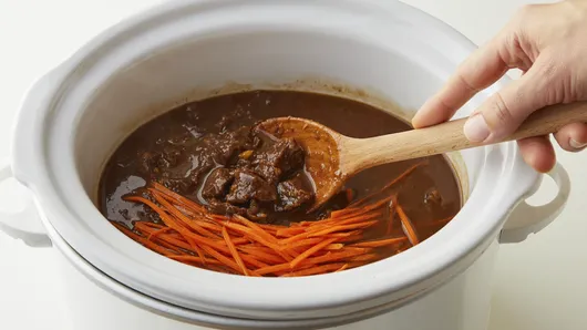 Cover; cook on Low heat setting 8 to 10 hours or until beef is tender and sauce is thickened. Add carrots and vinegar to slow cooker; stir to combine. Cover; cook about 30 minutes or until carrots are tender.