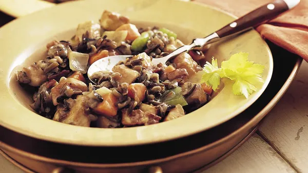Step2Place onion, celery, carrots, turkey, wild rice, tarragon and pepper in 3 1/2- to 4-quart slow cooker. Pour broth over top.