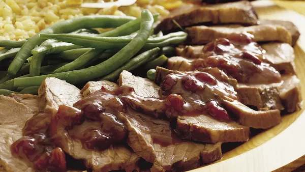 Step3Cover; cook on Low heat setting 4 to 5 hours. Serve pork and stuffing with cranberry relish.