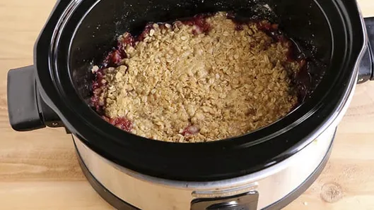 Step3Cover; cook on High heat setting 2 1/2 to 3 hours or until fruit is bubbling and crisp topping is lightly golden brown. Serve immediately with whipped cream.