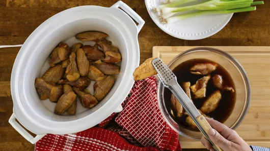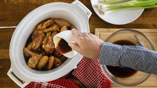 var configuration = {"title":"Slow-Cooker Teriyaki-Inspired Chicken Wings","introduction":"\u003cp\u003eMade with umami-loaded soy sauce, spicy ginger and tangy pineapple, these easy slow-cooker chicken wings have a sweet and savory flavor that’s similar to the teriyaki wings at your favorite Japanese restaurant.\u003c/p\u003e\n\n\n\u003cp\u003eAs the wings simmer in your slow cooker, the sauce caramelizes into a sticky-sweet glaze that coats each piece of chicken. And the meat is so tender, it almost falls off the bone. Even better: all you need is about 10 minutes prep time in the morning, and you’ll have a crowd-pleasing appetizer ready to enjoy six hours later!\u003c/p\u003e","servingSize":"1 Serving","image":{"small":{"media":"(min-width: 0px)","src":"https://mojo.generalmills.com/api/public/content/Wd-fK0OWnUCmSonnn0SyGg_webp_base.webp?v=4de0f5c5\u0026t=e724eca7b3c24a8aaa6e089ed9e611fd"},"medium":{"media":"(min-width: 500px)","src":"https://mojo.generalmills.com/api/public/content/Wd-fK0OWnUCmSonnn0SyGg_webp_base.webp?v=4de0f5c5\u0026t=191ddcab8d1c415fa10fa00a14351227"},"large":{"media":"(min-width: 767px)","src":"https://mojo.generalmills.com/api/public/content/Wd-fK0OWnUCmSonnn0SyGg_webp_base.webp?v=4de0f5c5\u0026t=191ddcab8d1c415fa10fa00a14351227"},"alt":"Slow-Cooker Teriyaki-Inspired Chicken Wings"},"contributor":{"label":"By","name":"Jessica Walker","displayDate":{"label":"Updated","date":"Sep 3, 2023"}},"ingredientGroups":[{"ingredients":[{"quantity":"3/4","description":"cup granulated sugar"},{"quantity":"1/2","description":"cup packed brown sugar"},{"quantity":"1","description":"teaspoon garlic powder"},{"quantity":"1","description":"teaspoon ground ginger"},{"quantity":"1","description":"cup soy sauce"},{"quantity":"3/4","description":"cup water"},{"quantity":"1/4","description":"cup pineapple juice"},{"quantity":"1/4","description":"cup vegetable oil"},{"quantity":"4","description":"lb chicken wings (24)"},{"quantity":"","description":"Sliced green onions"}]}],"steps":[{"description":"In very large bowl, mix all ingredients except chicken wings and green onions until smooth and sugar is completely dissolved.","stepShotImageUrl":"//mojo.generalmills.com/api/public/content/MlxCG8XC8EeQb2SOmAA9kQ_webp_base.webp?v=3d7c8b3f\u0026t=51a43a57af4046789e5a7f20567b1195"},{"description":"Add chicken wings; stir gently until wings are coated in marinade. Refrigerate at least 2 hours to marinate.","stepShotImageUrl":"//mojo.generalmills.com/api/public/content/KUuXOuVjdkmktKoM_AN2cQ_webp_base.webp?v=b9584bbb\u0026t=51a43a57af4046789e5a7f20567b1195"},{"description":"Remove chicken from marinade; place in 4- to 6-quart slow cooker.","stepShotImageUrl":"//mojo.generalmills.com/api/public/content/yap35OlY2EqXiAWnJTZj1w_webp_base.webp?v=7712cd08\u0026t=51a43a57af4046789e5a7f20567b1195"},{"description":"Add about 1 cup of the marinade to the slow cooker; discard any remaining marinade.","stepShotImageUrl":"//mojo.generalmills.com/api/public/content/Zkx8AYG_DEGrLa99FgIZlg_webp_base.webp?v=07e2322a\u0026t=51a43a57af4046789e5a7f20567b1195"},{"description":"Cover; cook on High heat setting 4 to 5 hours or until juice of chicken is clear when thickest part is cut to bone (165°F). To serve, transfer chicken wings to a large platter; sprinkle with green onions. Serve with cooked white rice, if desired.","stepShotImageUrl":"//mojo.generalmills.com/api/public/content/jglHDsozhUO1yaJ4AaNsHA_webp_base.webp?v=ee1f5b37\u0026t=51a43a57af4046789e5a7f20567b1195"}],"tips":[{"title":"","description":"It’s very important that the sugar integrates with all the other ingredients in the marinade, so you get a nice even coating over the chicken—and it bakes up savory-sweet and sticky! ","category":"Techniques","tipShots":[]},{"title":"","description":"Want to make those chicken wings extra-sticky? Once they’re cooked, transfer them from the slow cooker to a foil-lined baking sheet and set them under the broiler for 2-3 minutes, or until just beginning to char. They’ll be delightfully sticky-sweet.","category":"Serving Suggestions/Menu","tipShots":[]},{"title":"","description":"If you’re entertaining, you can dress up your chicken wings with all kinds of extra garnishes. If you like heat, a sprinkle of red pepper flakes will give them an easy-going kick. To add some bright notes to the mix, try a squeeze of lime juice or a couple shakes of red wine vinegar. Want to make it prettier AND tastier? Toasted sesame seeds or fresh cilantro will add a pop of color and flavor.","category":"Presentation/Garnish","tipShots":[]},{"title":"","description":"Refrigerate leftover chicken wings and their marinade in an airtight container for up to 3 days.","category":"Storage","tipShots":[]},{"title":"","description":"Slow Cooker Teriyaki-Inspired Chicken Wings are a natural for fall game days. If you need a couple more ideas to fill in your game day menu, check out our collection of \u003ca href=\u0022https://www.bettycrocker.com/special-occasions/gameday-and-tailgating-recipes\u0022\u003egame day and tailgating recipes\u003c/a\u003e.","category":"Serving Suggestions/Menu","tipShots":[]},{"title":"","description":"Slow-cooker chicken wings are just about the easiest way to get the perfect appetizer on your plate. This teriyaki chicken version of slow-cooker wings packs Asian flavors like soy sauce, ginger and pineapple into one tender bite. And because this recipe has 24 servings, you’ll have plenty for a crowd. Serve it as the main course or enjoy it alongside the rest of your favorite appetizers at your next get-together. Then check out the rest of Betty’s \u003ca href=\u0022https://www.bettycrocker.com/recipes/main-ingredient/chicken-recipes\u0022 target=\u0022_blank\u0022\u003echicken recipes\u003c/a\u003e for more delicious main course meals!","category":"Editorial","tipShots":[]},{"title":"","description":"Sticky fingers for the win! This recipe for Slow-Cooker Teriyaki-Inspired Chicken Wings is one of the 