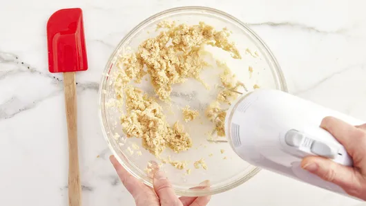 In medium bowl, beat softened butter and sugars with electric mixer on medium speed, or mix with spoon about 1 minute or until fluffy, scraping side of bowl occasionally.