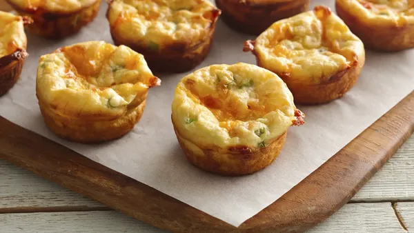 Step1Heat oven to 350°F. Line jelly roll pan, 15 1/2x10 1/2x1 inch, with foil. In large bowl, beat eggs, milk and seasoned salt thoroughly with fork or wire whisk until a uniform yellow.
