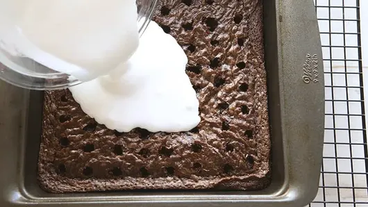 Step3In small microwavable bowl, microwave marshmallow crème uncovered on High 30 seconds or until soft. Add water; stir until smooth and pourable. Pour over brownies. Let stand 30 minutes.