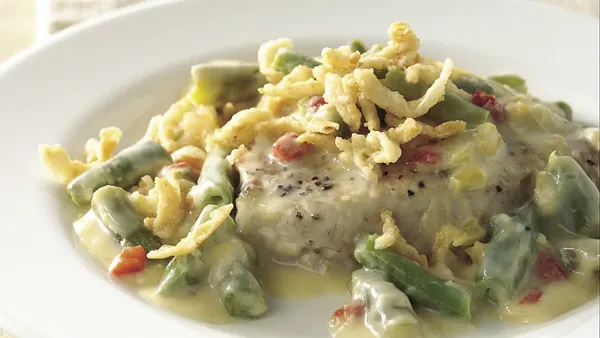 When the days get colder, this easy casserole is the kind of cozy dinner that’ll warm you right up any night of the week. It starts with a creamy mashed potato base that gets topped with tender, seasoned pork chops and finished with a hearty helping of savory caramelized onions and mushrooms.