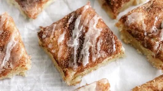 Step4Bake in a preheated 350°F oven for 12-15 minutes, or until the edges are golden brown and a toothpick inserted into the center comes out clean. Let the bars cool completely on a wire rack before topping with the remaining half of the cinnamon-sugar mixture and cutting into bars.