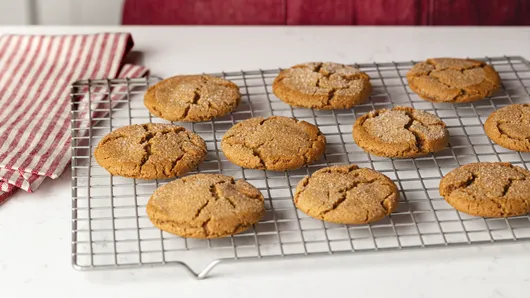 This hearty cookie can stand up to a lot–freezing included. To save some of your molasses cookies for later, simply place cooled cookies in a plastic storage bag or airtight container and pop them in the freezer. Then when the cookie craving strikes, just defrost and enjoy.