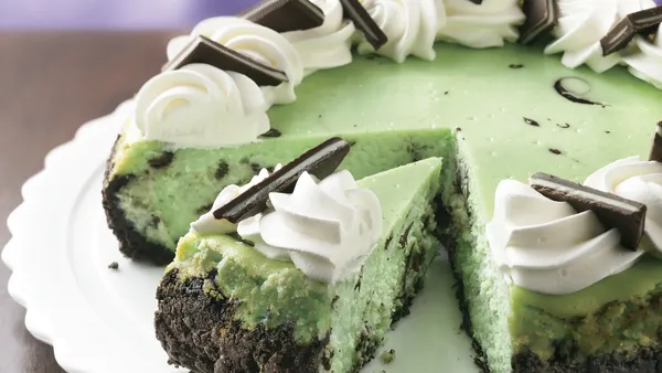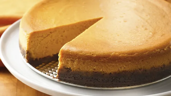 Step9To serve, remove sides of pan. Cut cheesecake into wedges.