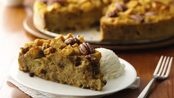 This spiced fig bread pudding is baked to perfection - a wonderful addition to your dessert table.
