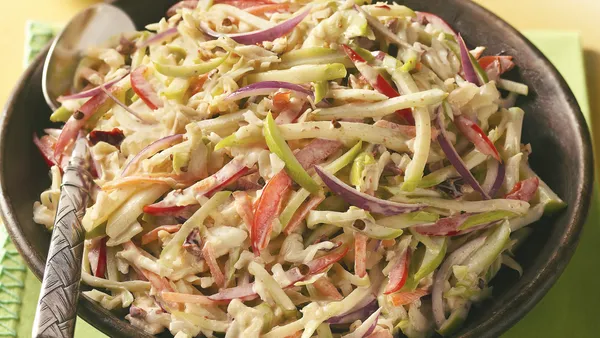 Spinach and red bell pepper bring extra color and nutrition to easy-to-fix coleslaw.