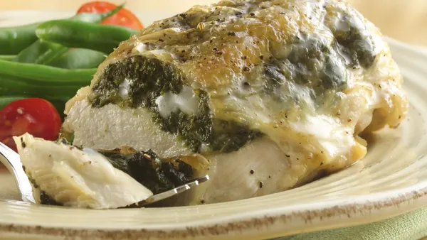 Step3In thick side of each chicken breast, cut 3-inch-long pocket to within 1/4 inch of opposite side of breast. Spoon about 1/4 cup spinach mixture into pocket in each chicken breast. Sprinkle pepper over chicken.