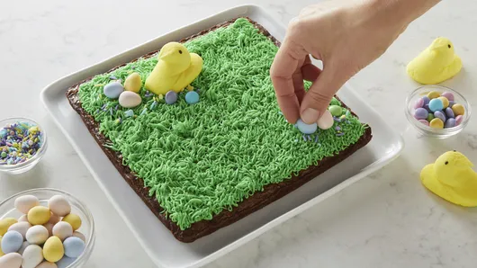 Using photo as a guide, top with 5 PEEPS® chicks, spacing randomly across top. Add sprinkles and candies.