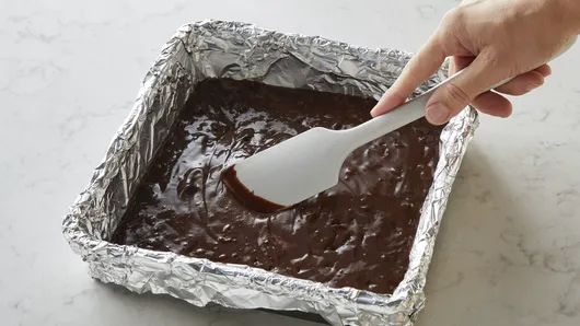 Heat oven to 350°F (325°F for dark or nonstick pan). Line 9-inch square pan with foil, allowing some to hang over edges of pan. Spray bottom and sides of foil with cooking spray. Make brownie batter as directed on box; spread in pan.