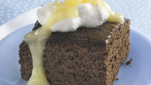 This recipe yields a dark and sticky ginger cake flavored with ground spices – a rich bitter-sweet dessert!