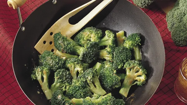 Step1Spray wok or 12-inch skillet with cooking spray; heat over medium-high heat. Add gingerroot and garlic; stir-fry about 1 minute or until light brown. Add broccoli, carrots and onion; stir-fry 1 minute.