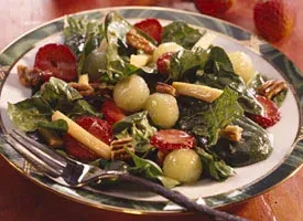 10 minutes to the table! A sweet citrus dressing complements fruity spinach salad.