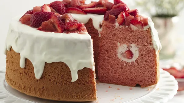 Flavor combinations such as strawberry and rhubarb are classics for a reason--they taste great together! Enjoy them both in this elegant layered angel food cake.