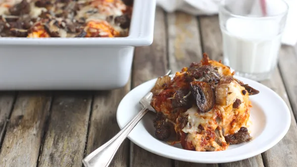 Step1Heat oven to 450°F. Grease rectangular baking dish,13x9x2 inches. Cook sausage and ground beef in 10-inch skillet over medium heat, stirring occasionally, until brown. Drain; set aside.