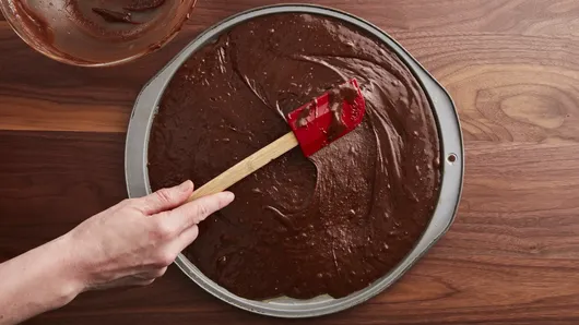 Step3Drop frosting by spoonfuls over top of brownie; spread, leaving 1/2-inch border.