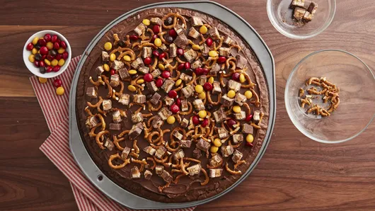 Sweet meets salty in this incredibly fudgy brownie pizza.