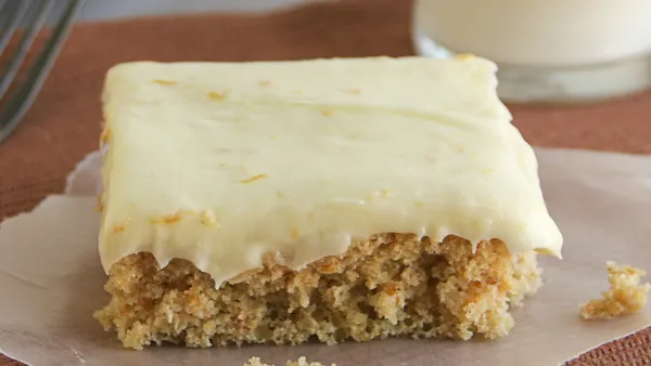 Step3In medium bowl, beat frosting ingredients, adding enough milk until frosting is smooth and spreadable. Frost cake.