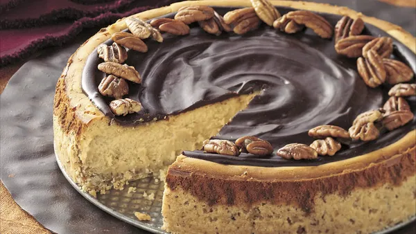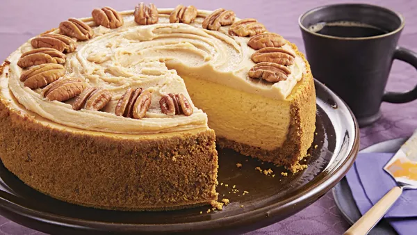 A baked-on nut topping and spicy sweet potato filling set this cheesecake apart from the ordinary.