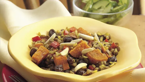 Stir in water. Heat to boiling; reduce heat. Cover and simmer 5 to 7 minutes or until sweet potato is tender.