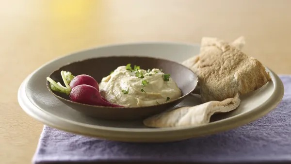 Step3Meanwhile, to make hummus, drain chickpeas, reserving liquid. In blender or food processor, place chickpeas, oil, lemon juice, garlic and remaining 1 tablespoon taco seasoning mix. Cover; blend until smooth. Add reserved chickpea liquid, 1 teaspoon at a time, until desired consistency.