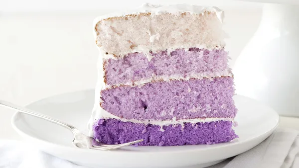 Step4To assemble, place deepest color cake layer on cake plate. Spread with 1/2 cup frosting. Stack layers from darkest to lightest, spreading 1/2 cup frosting between layers. Thinly spread top and side of cake with 1 1/2 cups frosting to seal in crumbs. Divide remaining frosting among 4 small bowls. Add different amounts of food color to each to make different shades of the same color to match cake layers.