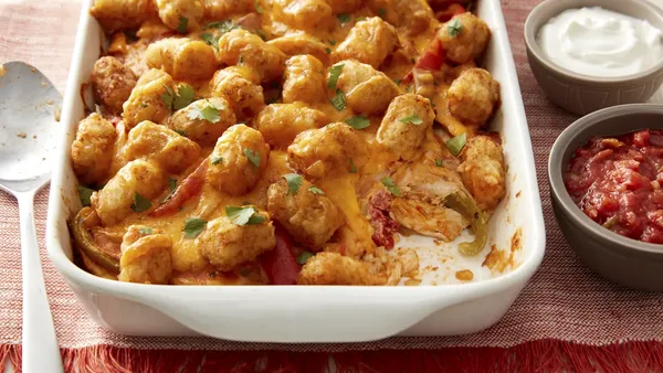 This mashup of two favorite comfort foods is a guaranteed weeknight winner. We replaced the trusty-but-basic pie crust topper with crispy, golden-brown Tater Tots™ frozen potatoes to make a pot pie casserole that's homey, hearty and sure to please the whole family.