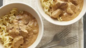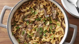 Plate your homemade beef stroganoff alongside or over comforting egg noodles. These noodles typically cook in less time than traditional boxed pasta, so be sure to follow the packaging instructions. And there you have it, a rich, tasty dish!