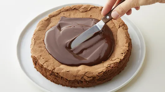 Heat oven to 325°F. Grease 9-inch round cake pan. In 2-quart heavy saucepan, melt 1 cup of the chocolate chips and 1/2 cup butter over low heat, stirring constantly; cool 5 minutes. Stir in flour until smooth. Stir in egg yolks until well blended.