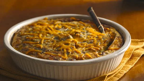 Step4When ready to bake, heat oven to 350°F. Bake covered 45 minutes. Uncover; bake 20 to 25 minutes longer or until center is set. Let stand 10 minutes before serving.